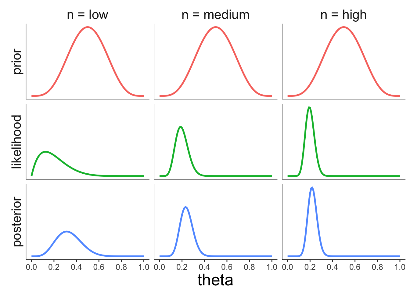 - Understanding the effect that prior, likelihood, and sample size have on the posterior.