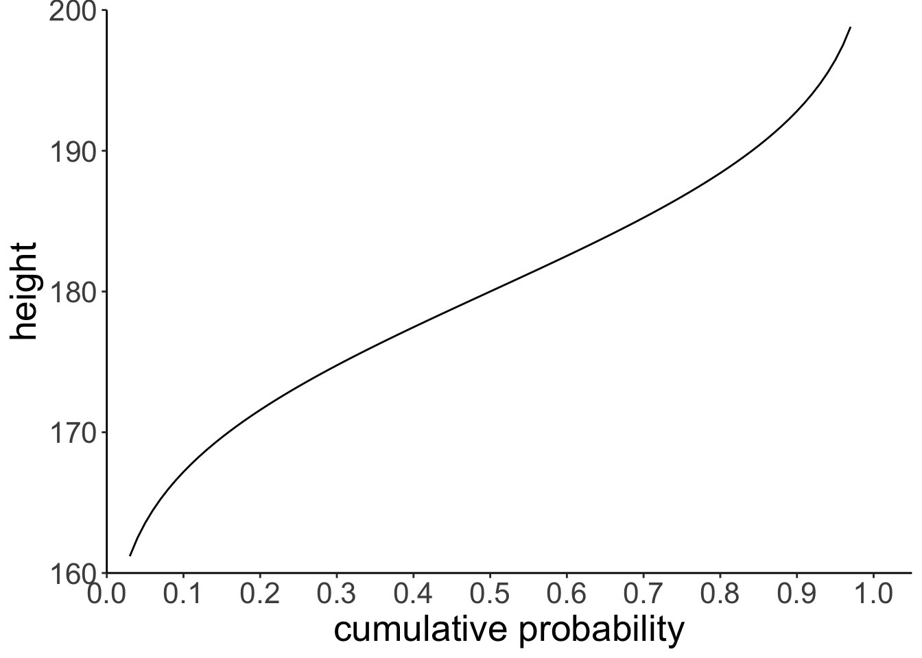 Note that the solution above is not particularly efficient since it uses the rowwise() function to make sure that a different random value for height is drawn for each row. Running this code will get slow for large samples. A more efficient solution would be the following: