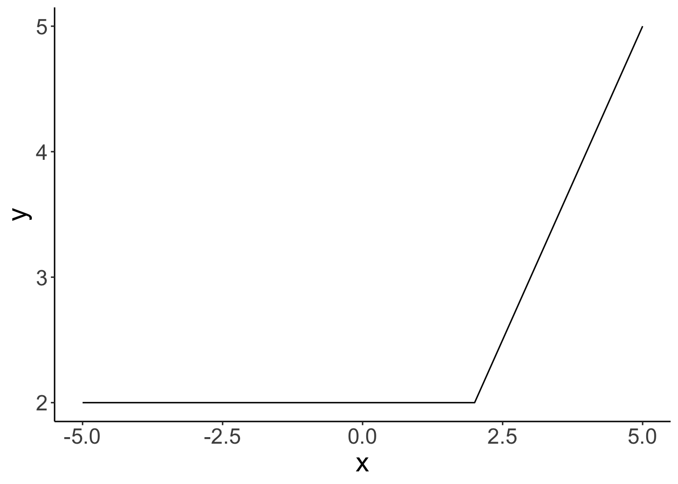 Here, I defined a breakpoint function. If the value of x is below the breakpoint, y equals the value of the breakpoint. If the value of x is greater than the breakpoint, then y equals x.